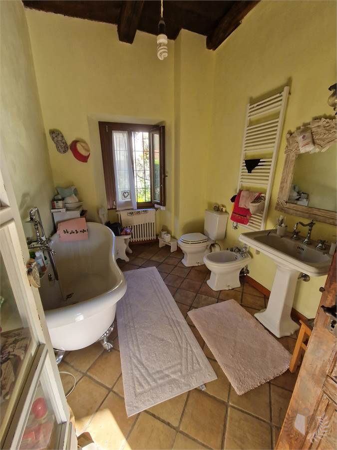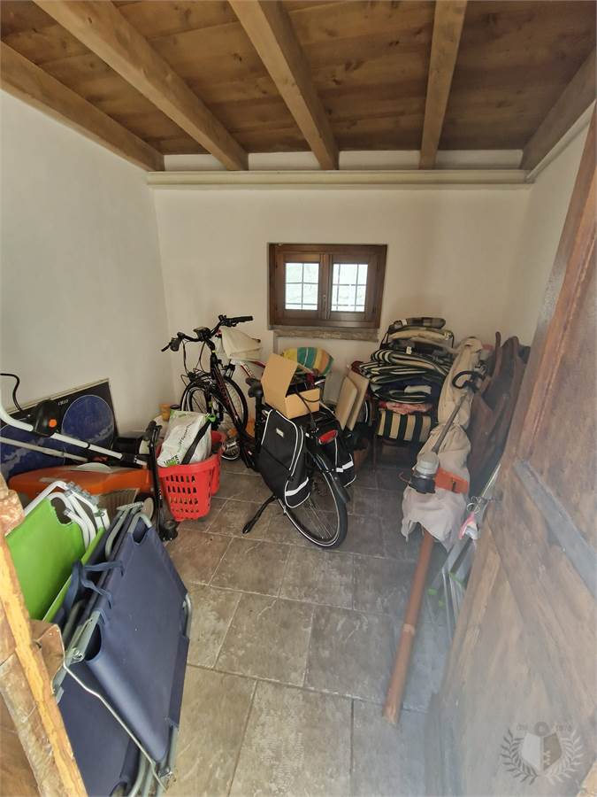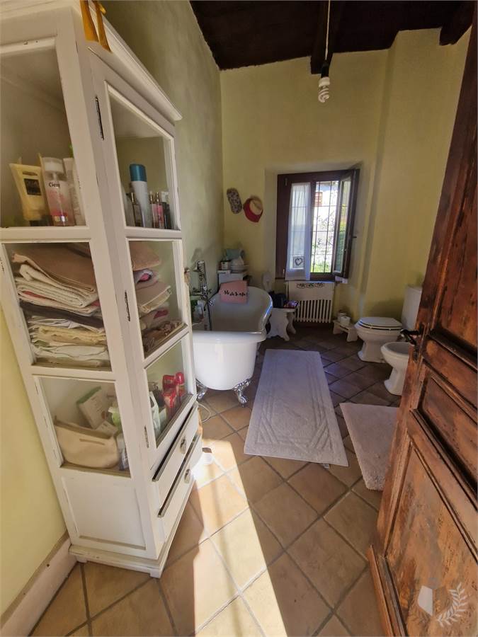 La propriété comprend un débarras, une cave, une chaufferie, un débarras, une solution idéale pour les vélos et motos. Petite annexe pour les invités. Lors de la rénovation, les anciens plafonds et parquets ont été préservés et régénérés. Le chauffage de dernière génération est au sol carrelé en terre cuite toscane et des Marches.