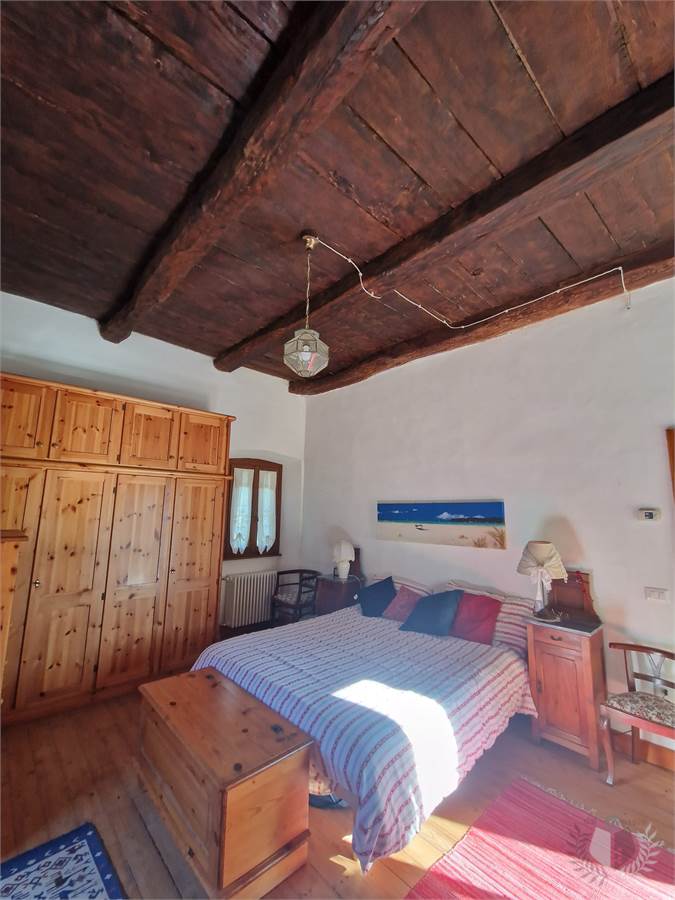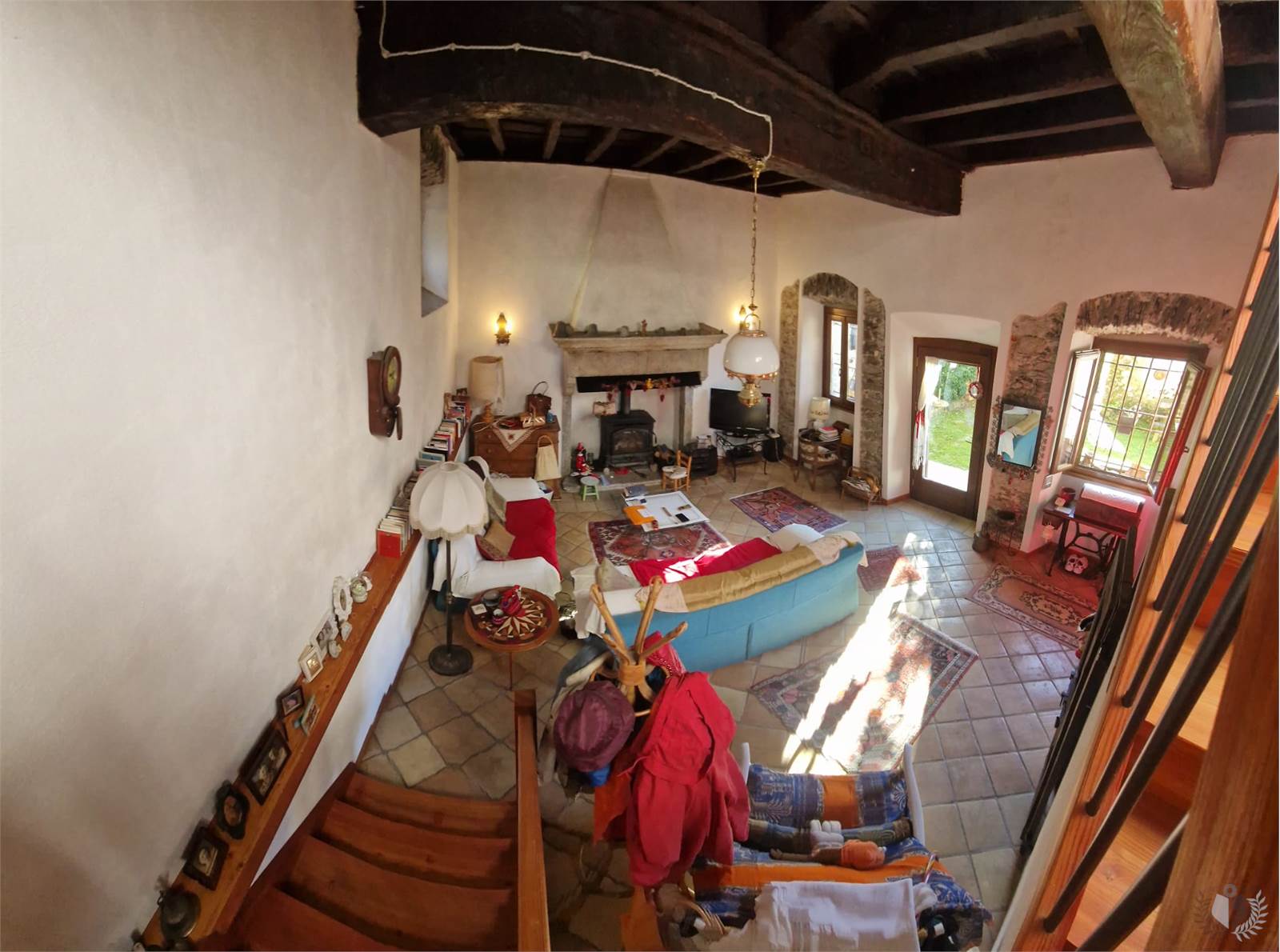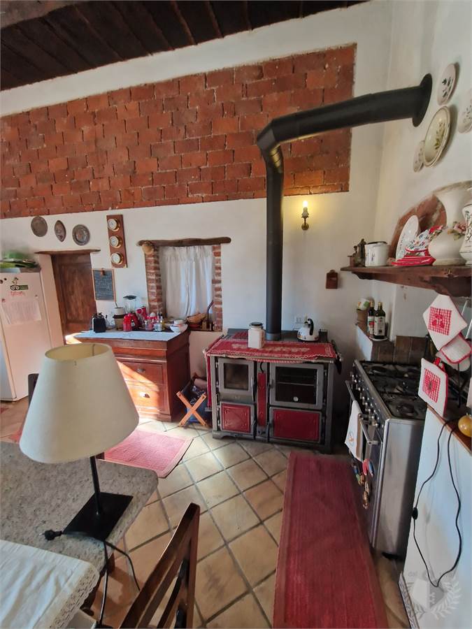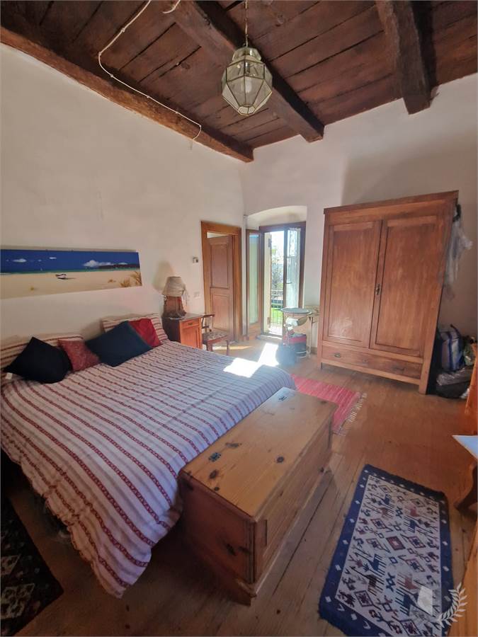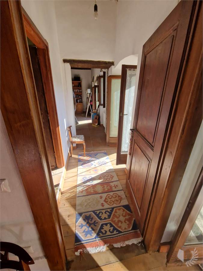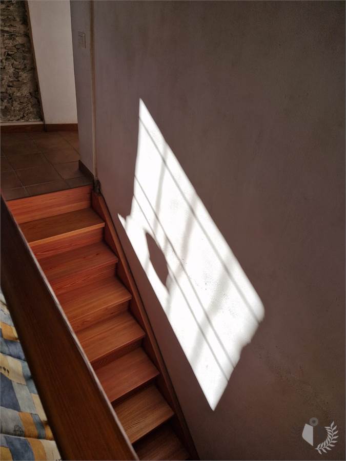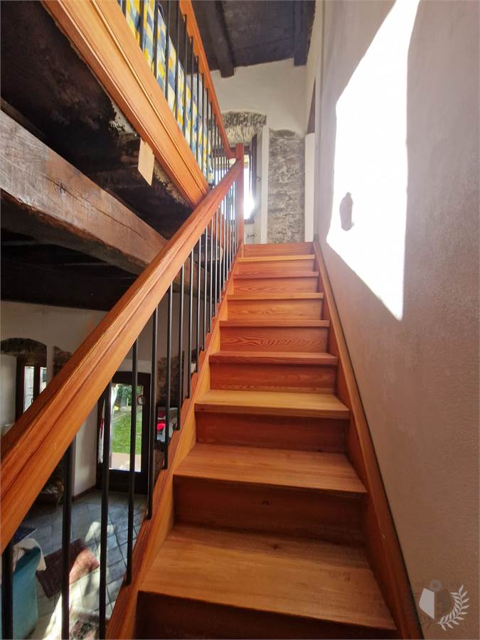 Au rez-de-chaussée de la maison, nous entrons dans le grand salon où l'imposante cheminée d'origine est joliment exposée, à côté de la cuisine rurale typique avec poêle à bois et évier en pierre. Avec un escalier intérieur confortable, vous atteignez la zone nuit où se trouvent deux grandes chambres et la salle de bain avec douche et baignoire.