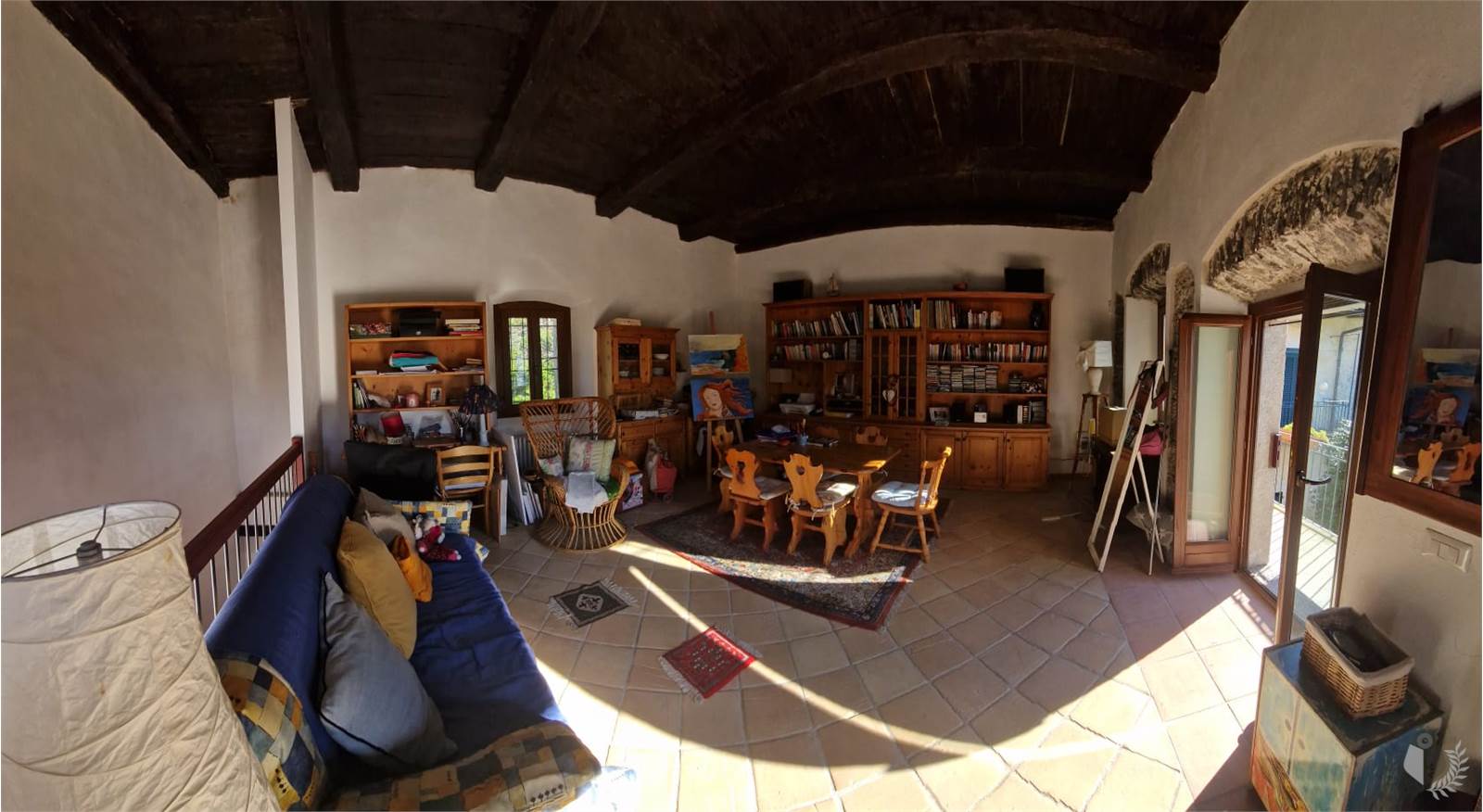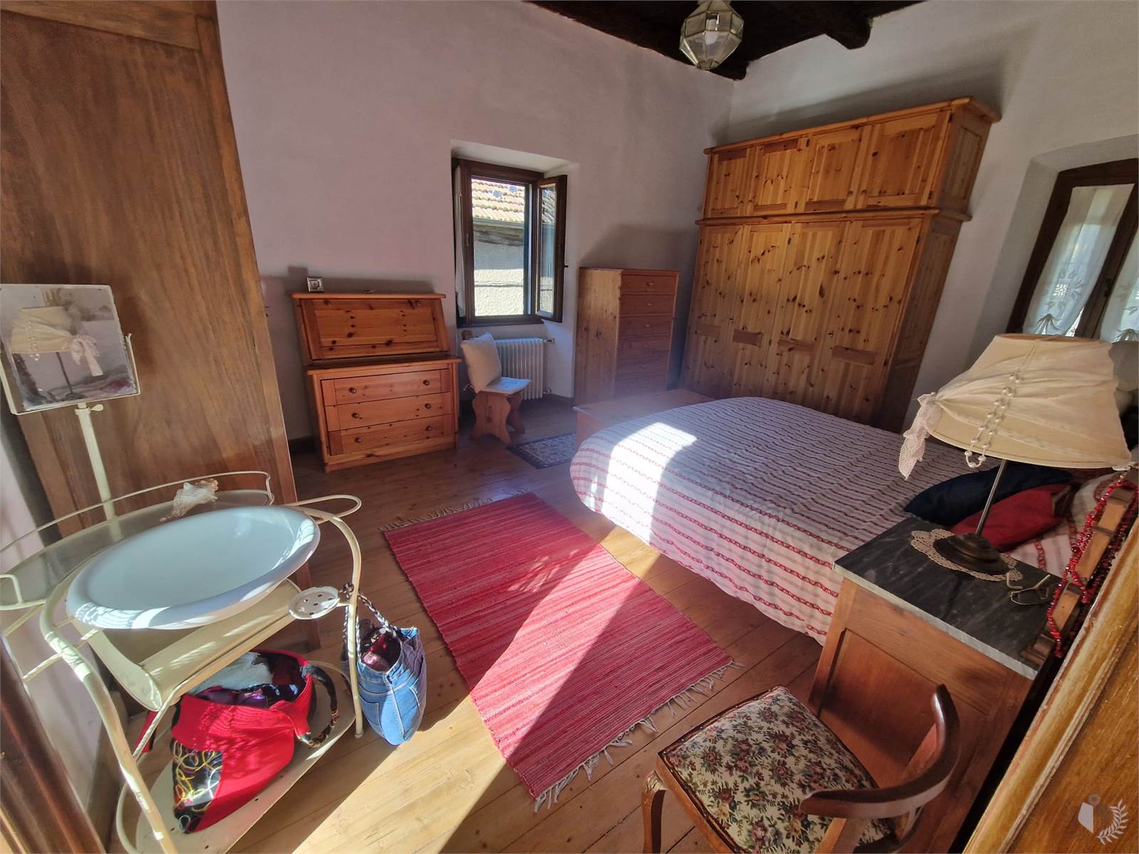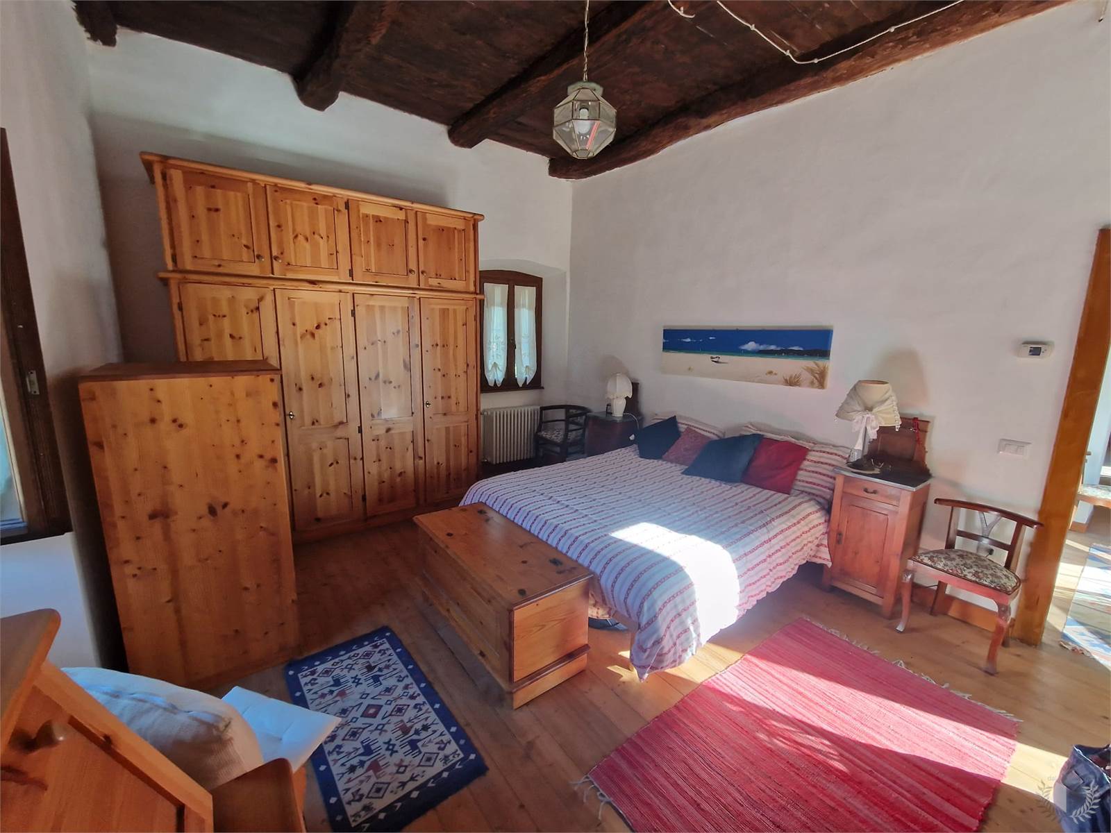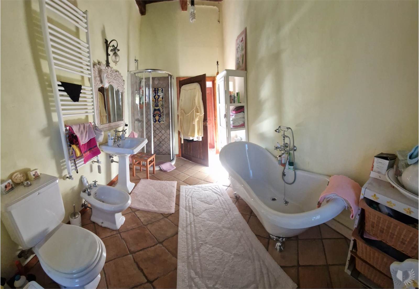 Au rez-de-chaussée de la maison, nous entrons dans le grand salon où l'imposante cheminée d'origine est joliment exposée, à côté de la cuisine rurale typique avec poêle à bois et évier en pierre. Avec un escalier intérieur confortable, vous atteignez la zone nuit où se trouvent deux grandes chambres et la salle de bain avec douche et baignoire.