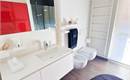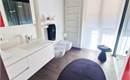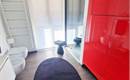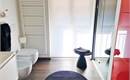Le finiture sono curatissime con particolari di pregio, come le porte interne in vetro satinato RIMADESIO.